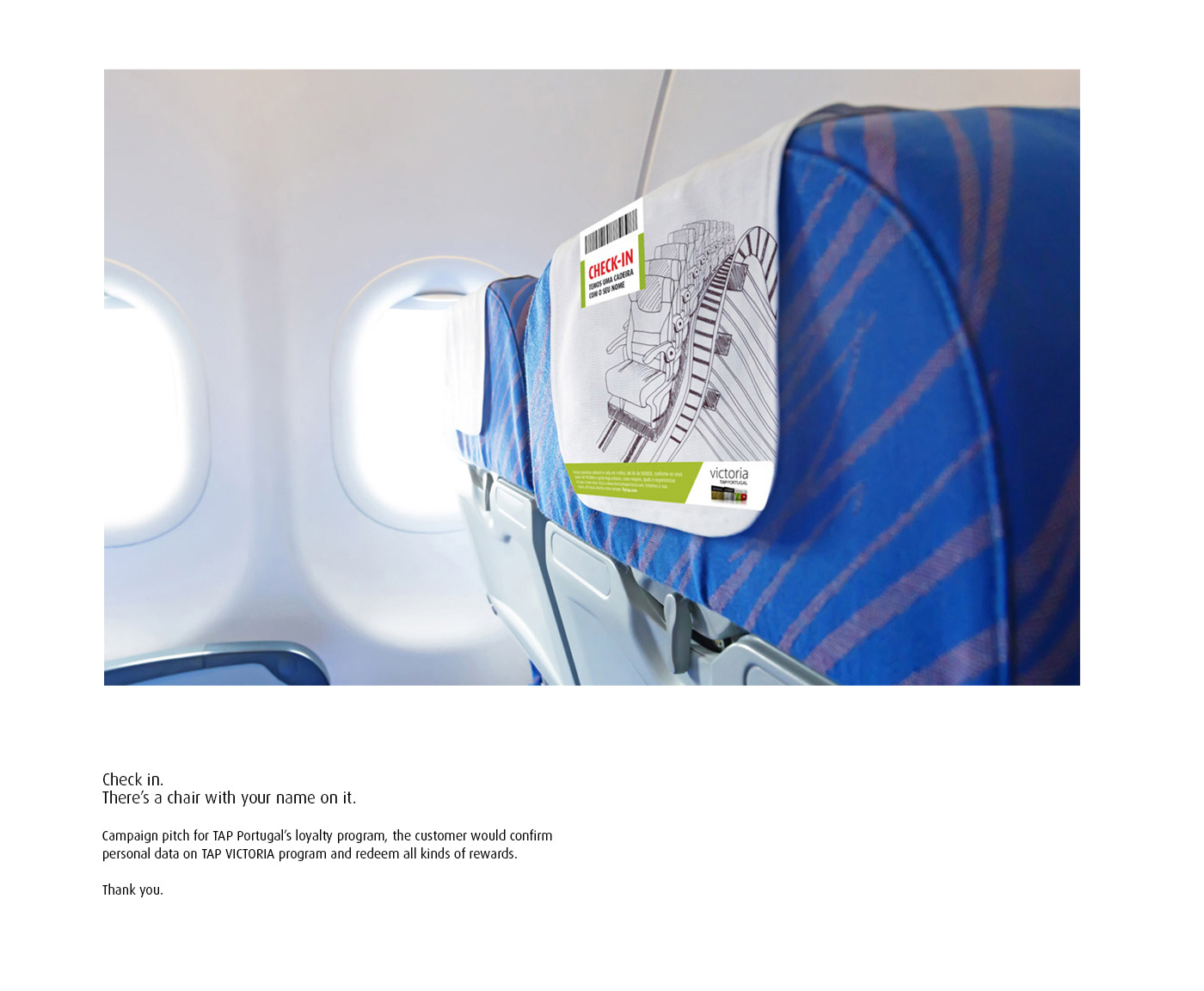 There's a chair with your name on it. Creative concept and proposal for TAP Portugal’s loyalty program, the customer would confirm personal data on TAP VICTORIA program and redeem all kinds of rewards.